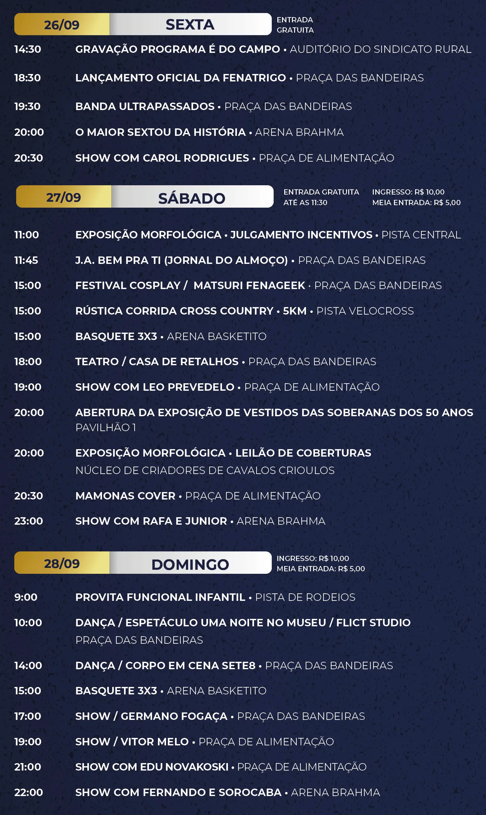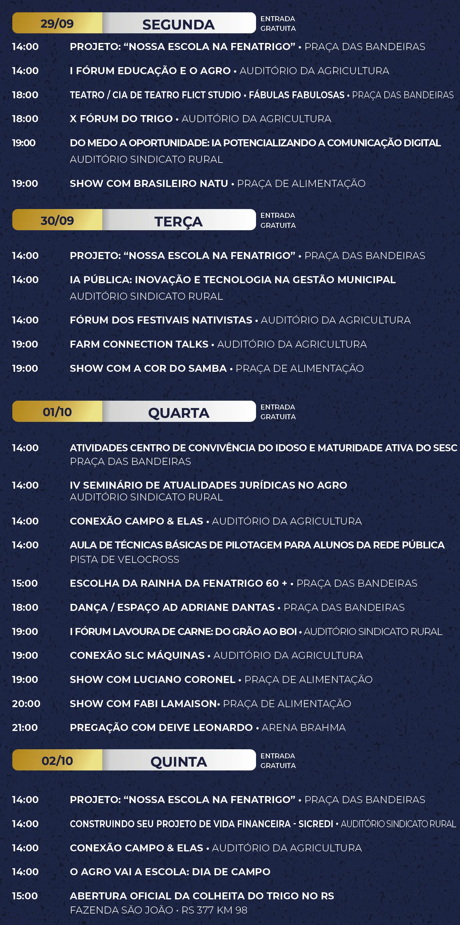 A Feira dá enfoque especial aos interesses da triticultura, da agricultura em geral, da pecuária, da indústria, do comércio e serviços